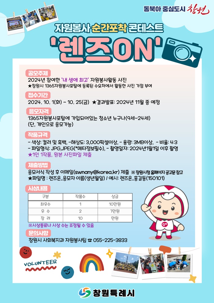 À̹ø °ø¸ðÀüÀº 2024³â Âü¿©ÇÑ ÀÚ¿øºÀ»ç Ȱµ¿ Áß °¡Àå ±â¾ï¿¡ ³²´Â ÀÚ¿øºÀ»ç Ȱµ¿ ÇöÀå »çÁø °ø¸ðÀüÀ¸·Î 1365 ÀÚ¿øºÀ»ç Æ÷Åп¡ °¡ÀԵǾî ÀÖ°í â¿ø½Ã¿¡ °ÅÁÖÇÏ´Â 9¼¼¿¡¼ 24¼¼ÀÇ Ã»¼Ò³âÀ̶ó¸é ´©±¸³ª ÀÀ¸ðÇÒ ¼ö ÀÖ´Ù.