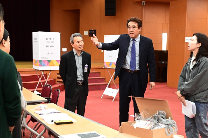 À̳¯ Â÷¼®È£ ÁøÁֽà ºÎ½ÃÀåÀº ½Ãû ½Ã¹ÎȦ¿¡ ¼³Ä¡µÈ »ó´ëµ¿ »çÀüÅõÇ¥¼Ò¸¦ ¹æ¹®ÇØ Àåºñ ¿î¿µ°ú ÅõÇ¥¼Ò ³» ¾ÈÀü°ü¸® »óÅ µîÀ» ÇϳªÇϳª »ìÇǸç Á¡°ËÇß´Ù.