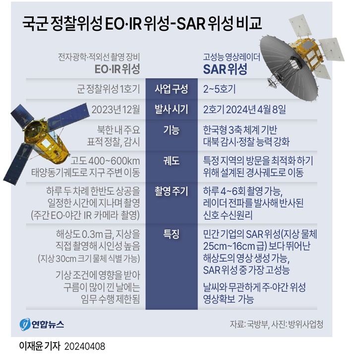 À̹ø¿¡ ¹ß»çµÈ Á¤ÂûÀ§¼º 2È£±â´Â ÀüÀÚ±¤ÇÐ(EO) ¹× Àû¿Ü¼±(IR) ÃÔ¿µ Àåºñ¸¦ žÀçÇÑ 1È£±â¿Í ´Þ¸® 'ÇÕ¼º°³±¸·¹ÀÌ´õ'¶ó°íµµ ºÒ¸®´Â SAR¸¦ žÀçÇϰí ÀÖ´Ù.