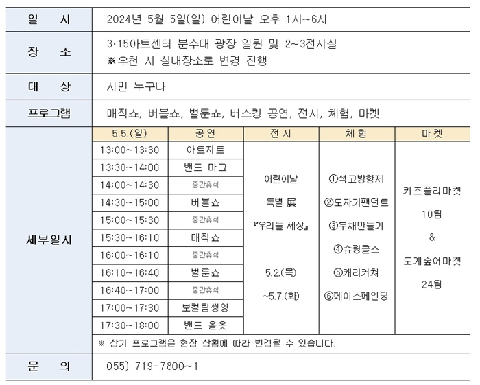 â¿ø¹®ÈÀç´Ü °ü°èÀÚ´Â “ÃàÁ¦¸¦ ÅëÇØ ¾î¸°À̳¯ÀÇ Àǹ̸¦ ´Ù½Ã Çѹø µÇ»õ±â´Â °è±â°¡ µÇ±æ ¹Ù¶õ´Ù”¸ç “¿Â ¼¼´ë°¡ ÇÔ²² ¾î¿ï·Á Áñ±æ ¼ö ÀÖ´Â À̹ø Çà»ç¿¡ ¸¹Àº °ü½É°ú Âü¿©¸¦ ºÎʵ台´Ù”°í ÀüÇß´Ù. (¹®ÀÇ 055-719-7800~1)