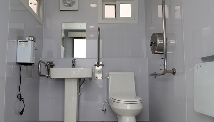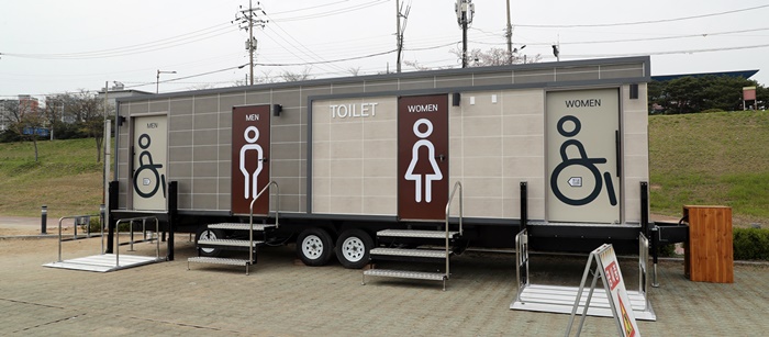 »õ·Î ¼³Ä¡ÇÑ ¼ö¼¼½Ä °øÁßÈÀå½ÇÀÇ ¿ÜÇüÀº °ü°è ¹ý·É»ó Æ®·¹ÀÏ·¯ Çü½ÄÀÌÁö¸¸, °£°áÇÑ µðÀÚÀÎÀ¸·Î ³»¿ÜºÎ¸¦ Àå½ÄÇϰí Àå¾ÖÀνü³, ºñ»ó¾È½Éº§, ¿µÀ¯¾Æ °â¿ë º¯±â µî ¾ÈÀü ¹× ÆíÀǽü³À» ¼³Ä¡ÇØ ³²³à³ë¼Ò ´©±¸³ª ºÒÆíÇÔ ¾øÀÌ »ç¿ëÇÒ ¼ö ÀÖµµ·Ï ¼³°èµÆ´Ù.