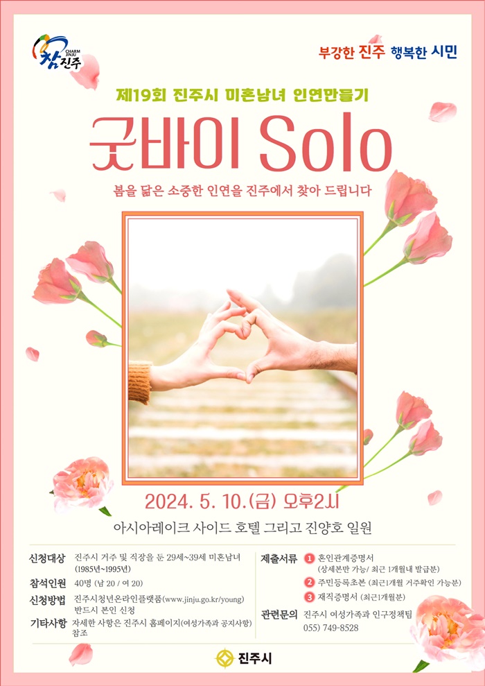 ÁøÁÖ¿¡ ÁÖ¼Ò¸¦ µÎ°í Àְųª ÁøÁÖ ¼ÒÀç Á÷ÀåÀ» µÐ 1985~1995³â»ý ¹ÌÈ¥³²³à´Â ´©±¸³ª ½Åû °¡´ÉÇϸç, ÁøÁֽà û³â ¿Â¶óÀÎÇ÷§Æû (www.jinju.go.kr/young)¿¡¼ ±¸ºñ¼·ù¸¦ ÷ºÎÇØ Áö³ 8ÀϺÎÅÍ 21ÀÏ ÀÏ¿äÀϱîÁö ½ÅûÇÏ¸é µÈ´Ù.