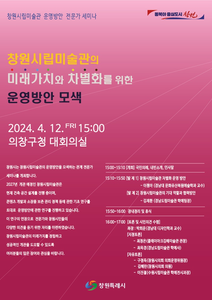 À̹ø ¼¼¹Ì³ª´Â Áö¿ª ÁÖ¹Î, ¹Ì¼ú°ü °ü·Ã Àü¹®°¡, ¹®È ¿¹¼ú¿¡ °ü½ÉÀÖ´Â ½Ã¹Î ´©±¸³ª Âü¼®ÇÒ ¼ö ÀÖÀ¸¸ç, ±âÁ¸ ¹Ì¼ú°ü°ú Â÷º°ÈµÈ ÄÜÅÙÃ÷¿Í ¿î¿µ¹æ¾È¿¡ ´ëÇÑ ³íÀǰ¡ ÁßÁ¡ÀûÀ¸·Î ÀÌ·ç¾îÁú ¿¹Á¤ÀÌ´Ù.