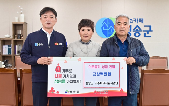 [½Ã»çÄÚ¸®¾ÆÀú³Î=±è¿¬ÇÐ ±âÀÚ] û¼Û±º °íÃßÀ°¹¦Áö¿ø»ç¾÷´Ü(´ÜÀå ±è½ÃÈ£)¿¡¼ Áö³ 9ÀÏ ÀÌ¿ôµ½±â ¼º±Ý 300¸¸¿øÀ» û¼Û±º¿¡ Àü´ÞÇß´Ù.