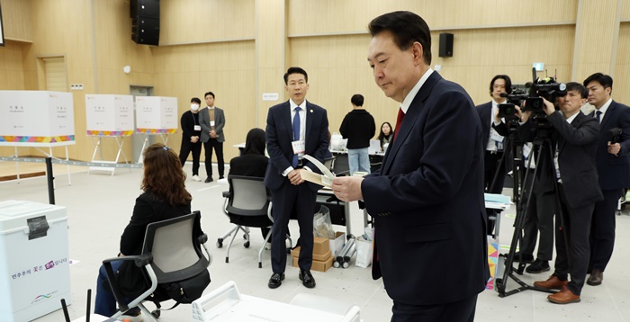 | À±¼®¿ ´ëÅë·ÉÀÌ Á¦22´ë ±¹È¸ÀÇ¿ø¼±°Å »çÀüÅõÇ¥°¡ ½ÃÀÛµÈ 5ÀÏ ºÎ»ê °¼±¸ ¸íÁö1µ¿ ÇàÁ¤º¹Áö¼¾ÅÍ »çÀüÅõÇ¥¼Ò¿¡¼ ¼±°Å»ç¹«¿ø¿¡°Ô¼ »çÀüÅõÇ¥¿ëÁö¸¦ ¹Þ°í ÀÖ´Ù. /´ëÅë·É½ÇÅë½Å»çÁø±âÀÚ´Ü |
