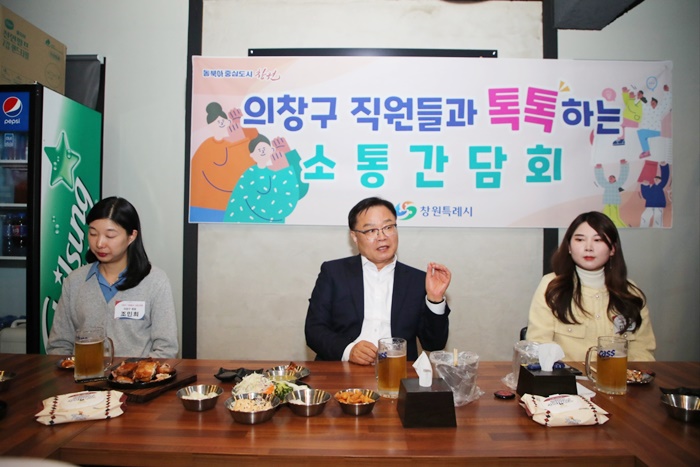 È«³²Ç¥ ½ÃÀåÀº “¼ÒÅëÀÇ Á߿伺ÀÌ °Á¶µÇ´Â Áö±Ý, Á÷¿øµé°ú ÇÑÀÚ¸®¿¡ ¸ð¿© ±×µ¿¾È °ÞÀº ¾î·Á¿ò¿¡ °üÇØ À̾߱⸦ ³ª´©´Â °Í¸¸À¸·Îµµ °ø°¨Àº ½ÃÀ۵ȴٔ¸ç “°ÇÀÇ»çÇ×À» Àû±Ø °ËÅäÇØ Á÷¿øµéÀÇ »ç±â¸¦ ³ôÀÏ ¼ö ÀÖµµ·Ï Çϰڴٔ°í ¸»Çß´Ù.