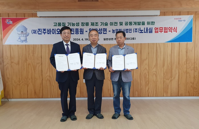 [½Ã»çÄÚ¸®¾ÆÀú³Î=¹ÚÀÏ¿ì ±âÀÚ] (Àç)ÁøÁÖ¹ÙÀÌ¿À»ê¾÷ÁøÈï¿ø(¿øÀå Á¤¿µÃ¶), ÁøÁֽà ÀϹݼº¸é(¸éÀå ·ù´öÈñ), ´äõ¸¶À» ³ó¾÷ȸ»ç¹ýÀÎ ¢ß³ë³»½Ç(´ëÇ¥ Ȳ¿õÁø)ÀÌ 19ÀÏ ÀϹݼº¸é ÁÖ¹ÎÀÚÄ¡¼¾ÅÍ 2Ãþ¿¡¼ ¾÷¹«Çù¾à½Ä(MOU)À» °¡Á³´Ù.
