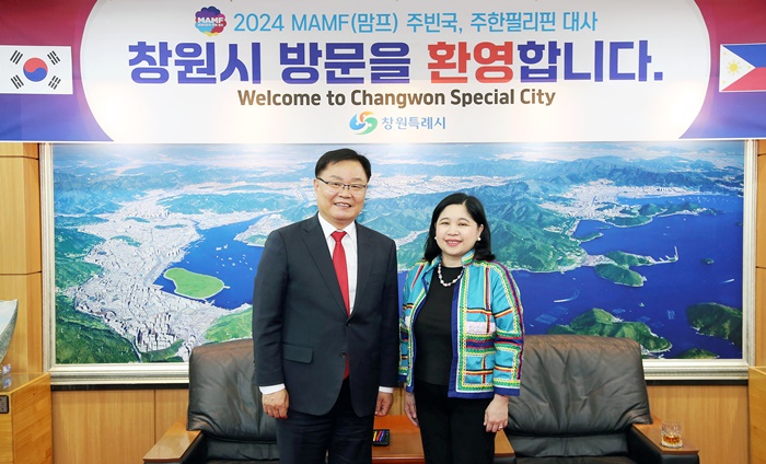 [½Ã»çÄÚ¸®¾ÆÀú³Î=Á¤Á¾¹Î ¼±ÀÓ±âÀÚ] â¿øÆ¯·Ê½Ã(½ÃÀå È«³²Ç¥)´Â 22ÀÏ Ã¢¿ø½Ãû Á¢°ß½Ç¿¡¼ ¸¶¸®¾Æ Å×·¹»ç µðÁ¸-µ¥º£°¡(Maria Theresa B. Dizon-De Vega) ÁÖÇÑÇʸ®ÇÉ ´ë»ç ÀÏÇàÀ» ¸Â¾Æ 2024³â ¸¾ÇÁ ÃßÁø ¹æÇâ°ú Çʸ®Çɰú â¿ø½ÃÀÇ ±³·ù ¹ßÀü ¹æ¾È¿¡ ´ëÇØ ³íÀÇÇß´Ù.