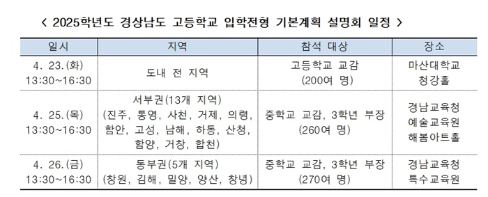 [½Ã»çÄÚ¸®¾ÆÀú³Î=Á¤Á¾¹Î ¼±ÀÓ±âÀÚ] °æ³²µµ±³À°Ã»(±³À°°¨ ¹ÚÁ¾ÈÆ)Àº 23ÀÏ, 25∼26ÀÏ µµ³» Áß·°íµîÇб³ ±³°¨°ú ÁßÇб³ 3Çг⠺ÎÀå±³»ç 700¿© ¸íÀ» ´ë»óÀ¸·Î 2025Çг⵵ °æ»ó³²µµ °íµîÇб³ ÀÔÇÐÀüÇü ±âº»°èȹ ¼³¸íȸ¸¦ ¿¬´Ù.