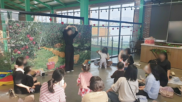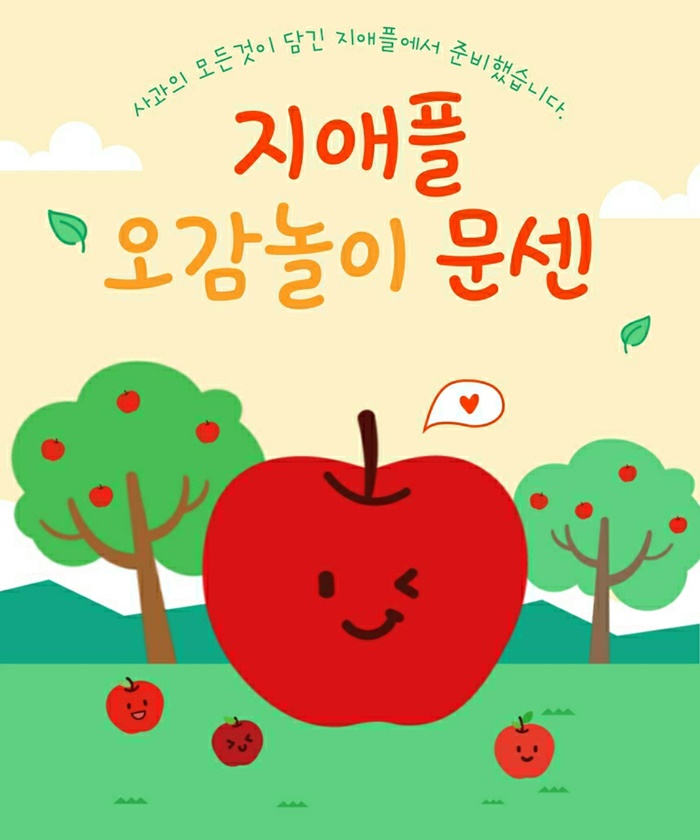 ‘¿À°¨³îÀÌ ¹®¼¾’Àº ¿À°¨³îÀÌ ¹®È¼¾ÅÍÀÇ ÁÙÀÓ¸»·Î 3~4¼¼ À¯¾Æ ´ë»óÀ¸·Î °ÅâÀÇ ´ëÇ¥ ³ó»ê¹°ÀÎ »ç°ú¸¦ ÁÖÁ¦·Î »ç°ú µû±â, »ç°ú¸¶Ä«·Õ ¸¸µé±â µî À¯¾ÆÀÇ ¿À°¨ ¹ß´ÞÀÌ µµ¿òÀÌ µÇ´Â ÇÁ·Î±×·¥ÀÌ´Ù.