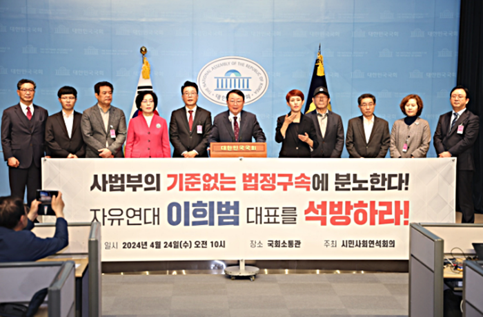 [½Ã»çÄÚ¸®¾ÆÀú³Î=ÀÌÁ¤Çý ±âÀÚ] ¹ü½Ã¹Î»çȸ´Üü¿¬ÇÕ(¹ü»ç·Ã) µî 500¿© ½Ã¹Î´Üü·Î ±¸¼ºµÈ ½Ã¹Î»çȸ ¿¬¼®È¸ÀÇ´Â 24ÀÏ ¿ÀÀü 10½Ã ±¹È¸¼ÒÅë°ü¿¡¼ ‘ÀÚÀ¯¿¬´ë ÀÌÈñ¹ü ´ëÇ¥ ±¸¼Ó¼®¹æ Ã˱¸' ±âÀÚȸ°ßÀ» °¡Á³´Ù