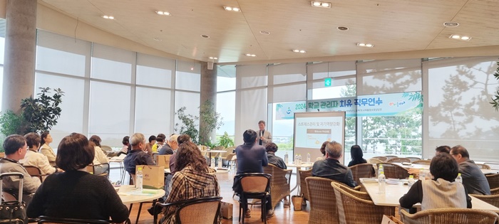 [½Ã»çÄÚ¸®¾ÆÀú³Î=Á¤Á¾¹Î ¼±ÀÓ±âÀÚ] °æ³²µµ±³À°Ã»(±³À°°¨ ¹ÚÁ¾ÈÆ)Àº ±³À° Ȱµ¿ Ä§ÇØ, Á÷¹« ½ºÆ®·¹½º µî ±³À°°úÁ¤ ¿î¿µÀ¸·Î ÁöÄ£ Çб³ °ü¸®ÀÚµéÀÇ ½É¸®Àû ȸº¹À» À§ÇØ 23ÀÏ ±³(¿ø)Àå, 24ÀÏ ±³(¿ø)°¨ ÃÑ 60¸íÀ» ´ë»óÀ¸·Î ‘2024³â °ü¸®ÀÚ Ä¡À¯ Á÷¹« ¿¬¼ö’¸¦ Çß´Ù.