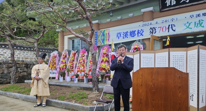[½Ã»çÄÚ¸®¾ÆÀú³Î=Á¤Á¾¹Î ¼±ÀÓ±âÀÚ] ÃʰèÇâ±³ Á¦70´ë ¹®¼ºÈ Àü±³ ÃëÀÓ½ÄÀÌ Áö³ 24ÀÏ ¿ÀÀü 11½Ã ±ºÀÇ¿ø, À¯°ü±â°üÀå, À¯¸² µî 200¿©¸íÀÌ Âü¼®ÇÑ °¡¿îµ¥ ÃʰèÇâ±³¿¡¼ °³ÃֵƴÙ.