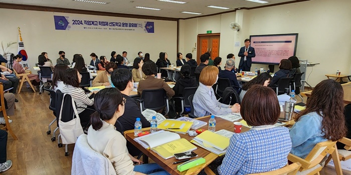 [½Ã»çÄÚ¸®¾ÆÀú³Î=Á¤Á¾¹Î ¼±ÀÓ±âÀÚ] °æ³²µµ±³À°Ã»(±³À°°¨ ¹ÚÁ¾ÈÆ)Àº 25ÀÏ °æ³² Á÷¾÷±³À° Çõ½ÅÁö±¸ ÁßºÎ±Ç Áö¿ø¼¾ÅÍ¿¡¼ µµ³» 35°³±³ Á÷¾÷°è°íÀÇ ÇÐÁ¡Á¦ ´ã´ç ±³»ç µî 90¸íÀ» ´ë»óÀ¸·Î Á÷¾÷°è°í ÇÐÁ¡Á¦ ¿î¿µ ³»½Çȸ¦ À§ÇÑ °øÀ¯È¸¸¦ ½Ç½ÃÇß´Ù.