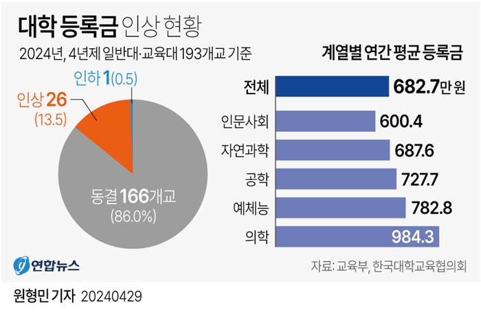 ±³À°ºÎ °ü°èÀÚ´Â "µî·Ï±ÝÀ» ÀλóÇÑ ´ëÇÐÀÌ ´ëºÎºÐ ¼Ò±Ô¸ð ´ëÇÐÀ̰ųª Á¾±³°è¿"À̶ó¸ç "Àüü Çлý¿¡°Ô ¹ÌÄ¡´Â ¿µÇâÀÌ Å©Áö´Â ¾Ê´Ù"¶ó°í ¼³¸íÇß´Ù.