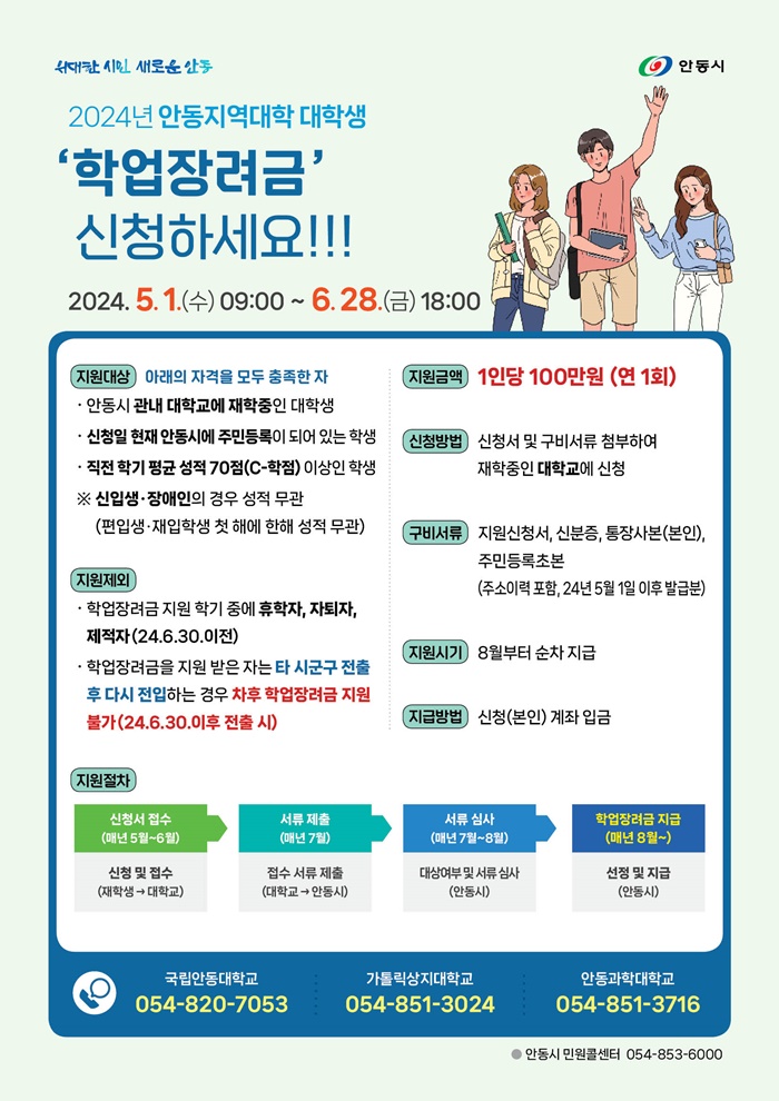 [½Ã»çÄÚ¸®¾ÆÀú³Î=±è¿¬ÇÐ ±âÀÚ] ¾Èµ¿½Ã(½ÃÀå ±Ç±ââ)´Â 5¿ù 1ÀϺÎÅÍ ‘2024³â ¾Èµ¿Áö¿ª´ëÇÐ ´ëÇлý Çо÷Àå·Á±Ý Áö¿ø»ç¾÷’ ½ÅûÀÚ¸¦ Á¢¼öÇÑ´Ù.