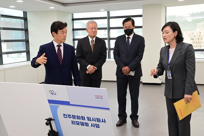 [½Ã»çÄÚ¸®¾ÆÀú³Î=¹ÚÀÏ¿ì ±âÀÚ] Á¶±ÔÀÏ ÁøÁÖ½ÃÀåÀº Áö³ 30ÀÏ ±è±æ¼ö ¹®È¿øÀå µîÀÌ Âü¼®ÇÑ °¡¿îµ¥ ÁøÁÖ´ë·Î 1037(µ¿¼ºµ¿, À±¾çºôµù)¿¡ À§Ä¡ÇÑ Á¾ÇÕ»çȸº¹Áö°ü·ÁøÁÖ¹®È¿ø ÀÓ½Ãû»ç ¸®¸ðµ¨¸µ °ø»ç¿¡ µû¸¥ ÀÔÁÖ Àü ÃÖÁ¾ ÇöÀå ½Ã¼³ Á¡°ËÀ» Çß´Ù.