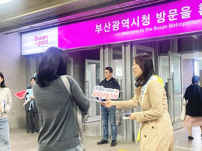 ±× ù ¹øÂ°·Î Áö³ 25ÀÏ ºÎ»ê½Ãû ¹× Àα٠°ü°ø¼ Ãâ±Ù ½Ã°£¿¡ ÁöÇÏö¿ª¿¡ ±ô¦ ¹æ¹®ÇØ Ãâ±ÙÇÏ´Â ºÎ»ê½Ã¹Î°ú °ø¹«¿ø¿¡°Ô ¸®Çø´°ú È«º¸¹°Ç°À» ¹èºÎÇϸç È£ÀÀÀ» ¾ò¾ú´Ù.