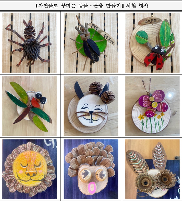 °ÅÁ¦¸ñÀç¹®ÈüÇèÀåÀÌ ¼ÒÀçÇÑ °ÅÁ¦ÀÚ¿¬È޾縲°ú Àα٠½£¿¡¼ äÃëÇÑ ÀÚ¿¬¹°ÀÎ ³ª¹µ°¡Áö, ¼Ö¹æ¿ï, ³«¿±, ¸»¸° ²É µîÀ» Ȱ¿ëÇØ µ¿¹° ¾ó±¼°ú °ïÃæ µîÀ» ²Ù¸ç ³ª¹«¸ñ°ÉÀÌ, ¸¶±×³Ý, ºê·ÎÄ¡ µîÀ¸·Î Ȱ¿ëÇÒ ¼ö ÀÖµµ·Ï ±âȹÇß´Ù.
