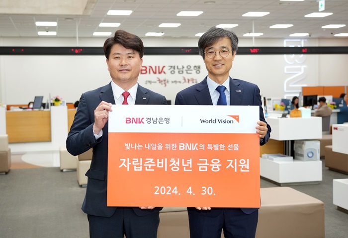 | BNK°æ³²ÀºÇà È«ÀÀÀÏ »ó¹«(»çÁø ¿ÞÂÊ)¿Í ¿ùµåºñÀü °æ³²¿ï»ê»ç¾÷º»ºÎ ¹ÚÁ¾±¸ º»ºÎÀåÀÌ ‘ÀÚ¸³Áغñû³â ±ÝÀ¶ Áö¿ø’À» ¾à¼ÓÇÏ´Â Áõ¼¸¦ µé°í ±â³äÃÔ¿µÀ» Çϰí ÀÖ´Ù. |