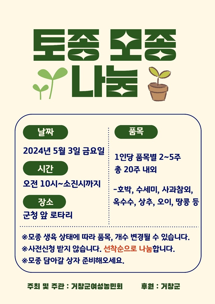 [½Ã»çÄÚ¸®¾ÆÀú³Î=Á¤Á¾¹Î ¼±ÀÓ±âÀÚ] °ÅⱺÀÌ ¿©¼º³ó¹Îȸ(ȸÀå ±èÁؼ÷)¿Í ÇÔ²² ÅäÁ¾ ³óÀÛ¹°ÀÇ °¡Ä¡¿Í Á߿伺 ¾Ë¸®±â À§ÇØ ¿À´Â 3ÀÏ ¿ÀÀü 10½Ã¿¡ °Åⱺû ¾Õ ·ÎÅ͸®¿¡¼ ±º¹ÎµéÀ» ´ë»óÀ¸·Î ÅäÁ¾¸ðÁ¾ ¹«·á³ª´® Çà»ç¸¦ °³ÃÖÇÑ´Ù.