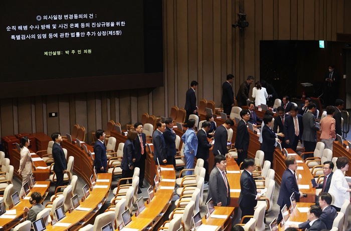 ¿©´çÀÎ ±¹¹ÎÀÇÈû ÀÇ¿øµéÀº ¾ÖÃÊ º»È¸ÀÇ ¾È°Ç¿¡ ¾ø´ø ä»óº´ Ư°Ë¹ýÀÌ ¾ß´çÀÇ ÀÇ»çÀÏÁ¤ º¯°æÀ¸·Î »óÁ¤·Ç¥°áµÇ´Â µ¥ Ç×ÀÇÇϸç Ç¥°á¿¡ ºÒÂüÇß´Ù.