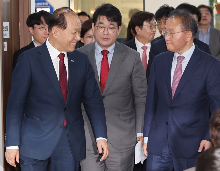 | ±¹¹ÎÀÇÈû Ȳ¿ì¿© ½ÅÀÓ ºñ»ó´ëÃ¥À§¿øÀåÀÌ 3ÀÏ ¿ÀÀü ÃëÀÓ ±âÀÚȸ°ßÀ» Çϱâ À§ÇØ À±Àç¿Á ¿ø³»´ëÇ¥ µî ¿ø³» ÁöµµºÎ¿Í ÇÔ²² ¼¿ï ¿©Àǵµ ´ç»ç ±âÀÚȸ°ßÀåÀ¸·Î µé¾î¼°í ÀÖ´Ù. /¿¬ÇÕ´º½º |