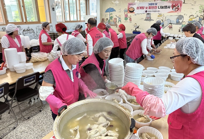 À̳¯ Çà»ç¿¡´Â ¾î¹öÀ̳¯À» ¸Â¾Æ â¿ø½ÃÀÚ¿øºÀ»çȸ ȸ¿ø 40¿©¸íÀÌ Âü¿©ÇÑ °¡¿îµ¥ ÇѾàÀç°¡ µé¾î°£ ¿µ¾ç °¡µæÇÑ »ï°èÅÁ°ú ¹°±èÄ¡, Àâä, ¿¬±ÙÁ¶¸², ¿¹«±èÄ¡ µîÀÇ ¹Ø¹ÝÂùÀ» Á¤¼º²¯ ¸¸µé°í Æ÷ÀåÇØ ÀÇⱸ · ¼º»ê±¸ Áö¿ª ³» ¼Ò¿Ü°èÃþ ¾î¸£½Å 300¼¼´ë¿¡ Á÷Á¢ °¡Á¤ ¹æ¹®, Àü´ÞÇß´Ù.