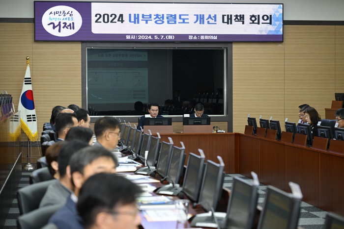 [½Ã»çÄÚ¸®¾ÆÀú³Î=Á¤Á¾¹Î ¼±ÀÓ±âÀÚ] °ÅÁ¦½Ã(½ÃÀå ¹ÚÁ¾¿ì)´Â 7ÀÏ, ½Ãû ÁßȸÀǽǿ¡¼ °£ºÎ°ø¹«¿ø 60¿©¸íÀÌ Âü¼®ÇÑ °¡¿îµ¥ ¹ÝºÎÆÐ û·ÅÁ¤Ã¥ ȸÀǸ¦ °³ÃÖÇß´Ù.