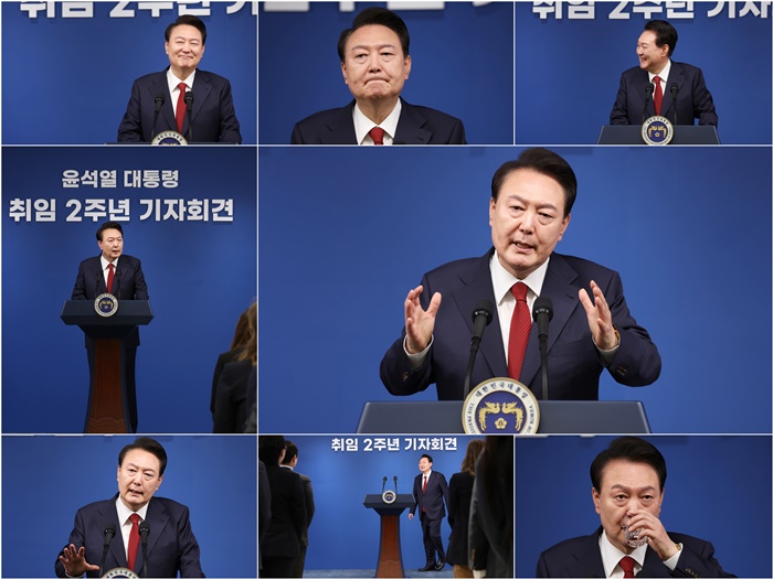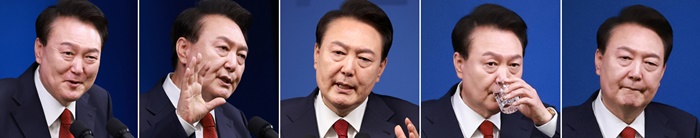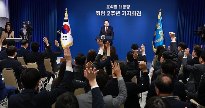 | À±¼®¿ ´ëÅë·ÉÀÌ 9ÀÏ ¿ÀÀü ¼¿ï ¿ë»ê ´ëÅë·É½Ç û»ç ºê¸®Çνǿ¡¼ ¿¸° 'À±¼®¿Á¤ºÎ 2³â ±¹¹Îº¸°í ¹× ±âÀÚȸ°ß'¿¡¼ Áú¹®À» À§ÇØ ¼ÕÀ» µç ±âÀÚµéÀÇ ¸ð½ÀÀ» ¹Ù¶óº¸°í ÀÖ´Ù. /¿¬ÇÕ´º½º |