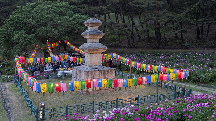 ¼±µµ»ê ÀÚ¶ô¿¡ À§Ä¡ÇØ ÀÖ´Â º¸¹° ¼¾Çµ¿»ïÃþ¼®Å¾Àº ÇöÀç Æó»çÁö¿¡ ž¸¸ Ȧ·Î ³²¾ÆÀÖ´Â »óÅ·ΠÀαٿ¡ ȶûµµ¸¦ ¸¸µé°í »ï±¹ÅëÀÏÀÇ ±âÃʸ¦ ´ÛÀº ÁøÈï¿Õ¸ª, ¹«¿¿Õ¸ª°ú ÁøÁö¿Õ¸ª, Çå¾È¿Õ¸ª, ¹®¼º¿Õ¸ªÀÌ ÀÖÀ¸¸ç À̳¯ Á¡µîºÎÅÍ ¿À´Â 15ÀϱîÁö ºÒÀ» ¹àÈ÷´Â 200¿©°³ µî°ú ÁÖÀ§ÀÇ ²ÉÀÌ ¾î¿ì·¯Á® ¸¹Àº »ç¶÷µé¿¡°Ô ÀÌ»ö º¼°Å¸®¸¦ Á¦°øÇÑ´Ù.