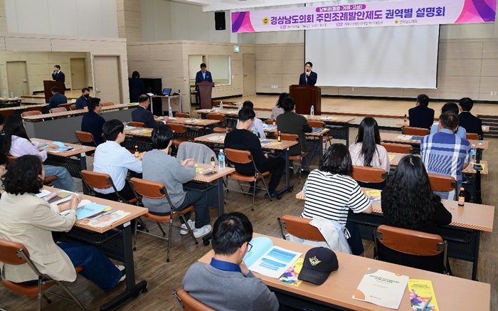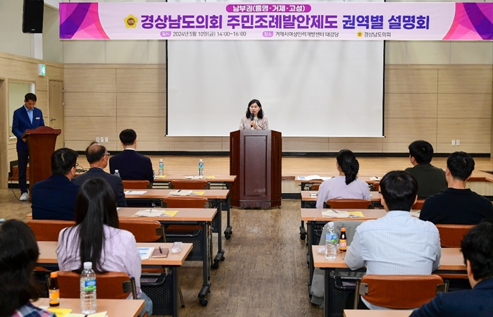 [½Ã»çÄÚ¸®¾ÆÀú³Î=Á¤Á¾¹Î ¼±ÀÓ±âÀÚ] °æ³²µµÀÇȸ(ÀÇÀå ±èÁøºÎ)¿Í ½Ã±ºÀÇȸ°¡ ÇÔ²²ÇÑ ’ÁÖ¹ÎÁ¶·Ê¹ß¾ÈÁ¦µµ 5°³ ±Ç¿ª ¼³¸íȸ‘ °¡ ±× ù ½ÃÀÛÀ¸·Î ³²ºÎ±Ç ´ëÇ¥ °ÅÁ¦½Ã ¿©¼ºÀη°³¹ß¼¾ÅÍ¿¡¼ °³ÃֵƴÙ.