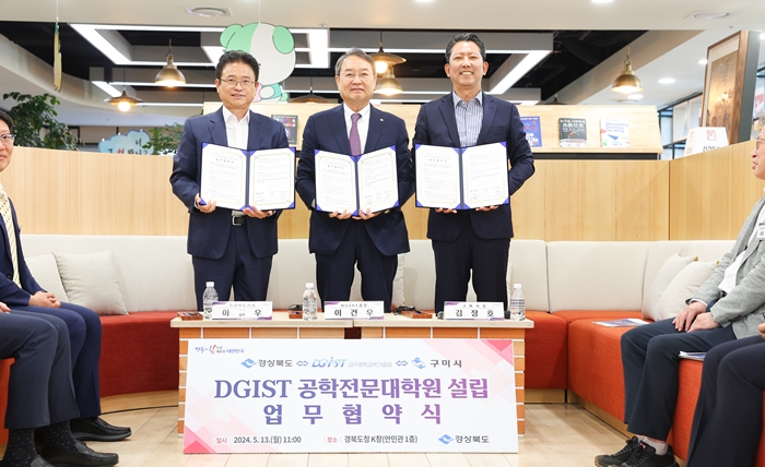 [½Ã»çÄÚ¸®¾ÆÀú³Î=±è¿¬ÇÐ ±âÀÚ] °æºÏµµ°¡ ´ë±¸°æºÏ°úÇбâ¼ú¿ø(DGIST), ±¸¹Ì½Ã¿Í ¼ÕÀâ°í Áö¿ª ÷´Ü»ê¾÷ÀÇ µµ¾àÀ» À̲ø ÇöÀå ¸®´õÇü °í±Þ °øÇÐ ÀÎÀ縦 ¾ç¼ºÇϱâ À§ÇÑ ‘DGIST °øÇÐÀü¹®´ëÇпø’À» ±¸¹Ì ±Ý¿ÀÅ×Å©³ë¹ë¸®¿¡ ¼³¸³ÇÑ´Ù.