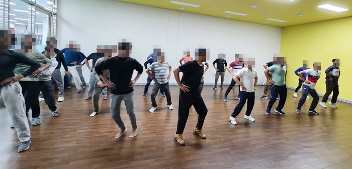 Àü¹®ÀûÀÎ ¿îµ¿ °»çÀÇ Áöµµ ¾Æ·¡ À½¾Ç¿¡ ¸ÂÃç ¾ð¾îÀÇ À庮 ¾øÀÌ 7°³±¹ÀÇ ´Ù¾çÇÑ ¿Ü±¹ÀÎ ±Ù·ÎÀÚµéÀÌ ½±°Ô µû¶ó ÇÒ ¼ö ÀÖ´Â À¯»ê¼Ò · ±Ù·Â¿îµ¿À¸·Î ÁøÇàµÈ´Ù.
