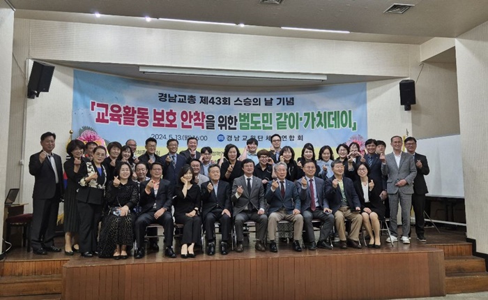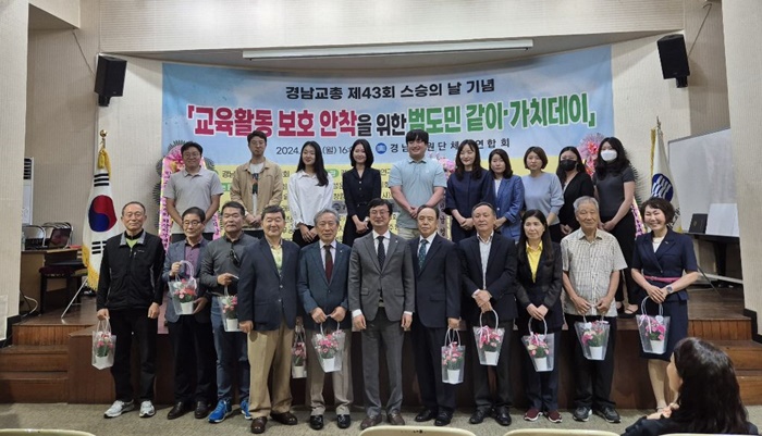 [½Ã»çÄÚ¸®¾ÆÀú³Î=ÀÌÁ¤Çý ±âÀÚ] '°æ³²±³ÃÑ Á¦43ȸ ½º½ÂÀÇ ³¯ ±â³ä, ±³À°È°µ¿ º¸È£ ¾ÈÂøÀ» À§ÇÑ ¹üµµ¹Î °°ÀÌ · °¡Ä¡µ¥ÀÌ' Çà»ç°¡ 13ÀÏ ¿ÀÈÄ 4½Ã °æ³²±³ÃÑ È¸°ü¿¡¼ ¿ø·Î ±³»çµé°ú µµ³» 40¿©°³ÀÇ ½Ã¹Î´Üü ¹× ÃÊ.Áß.°í °¢ Çб³ ´ëÇ¥ ±³»çµéÀÌ Âü¿©ÇÑ °¡¿îµ¥ ¿·È´Ù.