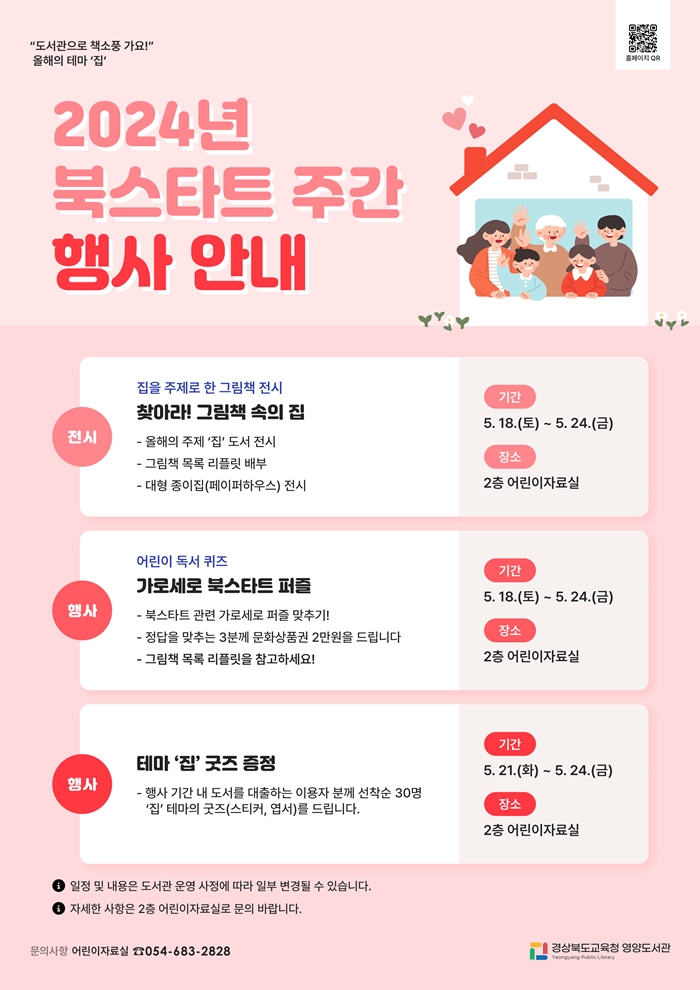 2024³â Á¦2ȸ ºÏ½ºÅ¸Æ® ÁÖ°£ »ç¾÷Àº ‘Áý’À» Å׸¶·Î ÇÏ´Â ±×¸²Ã¥À» ÁÖÁ¦·Î Çϸç, ‘µµ¼°üÀ¸·Î Ã¥¼Òdz °¡¿ä!’¶ó´Â ½½·Î°ÇÀ¸·Î ¿î¿µÇÑ´Ù.