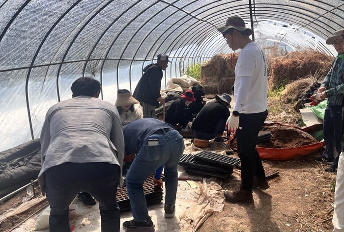 À繫°ú, ³ó¾÷Ãà»ê°ú Á÷¿ø 15¸íÀÌ Âü¿©ÇÑ À̹ø Àϼյ½±â´Â ÃÖ±Ù Ç㸮 ¼ö¼úÀ» ¹Þ¾Æ ÀϼÕÀÌ ÇÊ¿äÇÑ ±è¡Û¡Û(81¼¼, ³²) ³ó°¡ ºñ´ÒÇϿ콺¿¡¼ Äá ÆÄÁ¾ ÀÛ¾÷À» Áö¿øÇß´Ù.