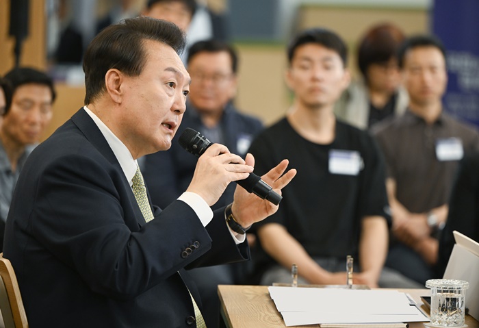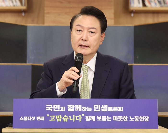 | À±¼®¿ ´ëÅë·ÉÀÌ 14ÀÏ ¼¿ï Áß±¸ ¼¿ï°í¿ëº¹ÁöÇ÷¯½º¼¾ÅÍ¿¡¼ ¿¸° ½º¹°´Ù¼¸¹øÂ° '±¹¹Î°ú ÇÔ²²ÇÏ´Â ¹Î»ýÅä·Ðȸ'¿¡¼ ¹ß¾ðÇϰí ÀÖ´Ù. À̳¯ Åä·Ðȸ´Â '°í¸¿½À´Ï´Ù, ÇÔ²² º¸µë´Â ³ëµ¿ÇöÀå'À» ÁÖÁ¦·Î ÁøÇàµÆ´Ù. /´ëÅë·É½ÇÅë½Å»çÁø±âÀÚ´Ü |