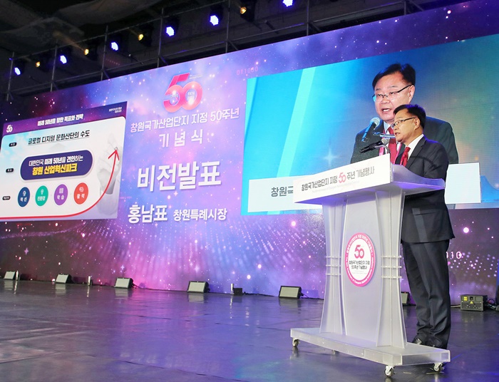 | È«³²Ç¥ â¿øÆ¯·Ê½ÃÀåÀÌ Áö³ 4¿ù 24ÀÏ Ã¢¿ø±¹°¡»ê´Ü ÁöÁ¤ 50Áֳ⠱â³ä½Ä¿¡¼ ¹Ì·¡ 50³â ºñÀüÀ» ¹ßÇ¥ÇÏ´Â ¸ð½À. |