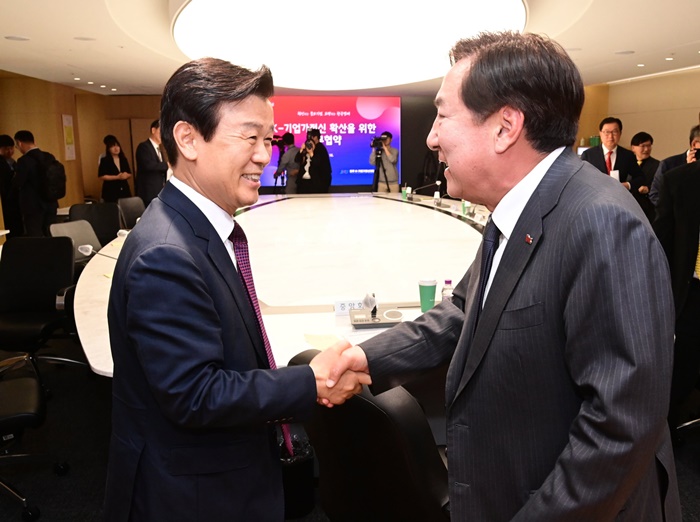 [½Ã»çÄÚ¸®¾ÆÀú³Î=¹ÚÀÏ¿ì ±âÀÚ] ÁøÁÖ K-±â¾÷°¡Á¤½ÅÀÇ ¼¼°èÀû È®»êÀ» À§ÇØ ÁøÁÖ½Ã¿Í Áß¼Ò±â¾÷Áß¾Óȸ, ÁøÁÖ K-±â¾÷°¡Á¤½ÅÀç´ÜÀÌ ¸Ó¸®¸¦ ¸Â´í´Ù.