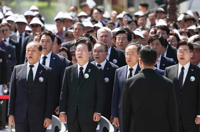 | À±¼®¿ ´ëÅë·ÉÀÌ 18ÀÏ ±¤Áֽà ºÏ±¸ ±¹¸³5·18¹ÎÁÖ¹¦Áö¿¡¼ ¿¸° Á¦44ÁÖ³â 5·18¹ÎÁÖȿ ±â³ä½Ä¿¡¼ ¹¬³äÇϰí ÀÖ´Ù. /´ëÅë·É½ÇÅë½Å»çÁø±âÀÚ´Ü |