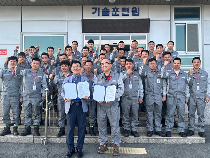 À̳¯ Çù¾à½Ä¿¡ Âü¼®ÇÑ ÄÉÀÌÁ¶¼± °øµÎÆò ³ë»çÇù·Â½ÇÀåÀº “¿Ü±¹ÀÎ ±Ù·ÎÀÚµéÀÇ ±ÞÁõ¿¡ ´ëÀÀÇÏ¿© ‘ã¾Æ°¡´Â Çѱ¹¾î ±³À°’ ÇÁ·Î±×·¥À» °³¹ßÇØ ±³ÅëÆíÀÌ ¿©ÀÇÂúÀº ±Ù·ÎÀÚµéÀÌ °ÅÁÖÇÏ´Â ÁøÇØ ±â¼÷»ç±îÁö ã¾Æ¿Í¼ Çѱ¹¾î ½Ç·ÂÀ» Çâ»óÇϴµ¥ Àû±Ø Çù·ÂÇØ¼ °¨»çÇÏ´Ù”°í ¸»Çß´Ù.