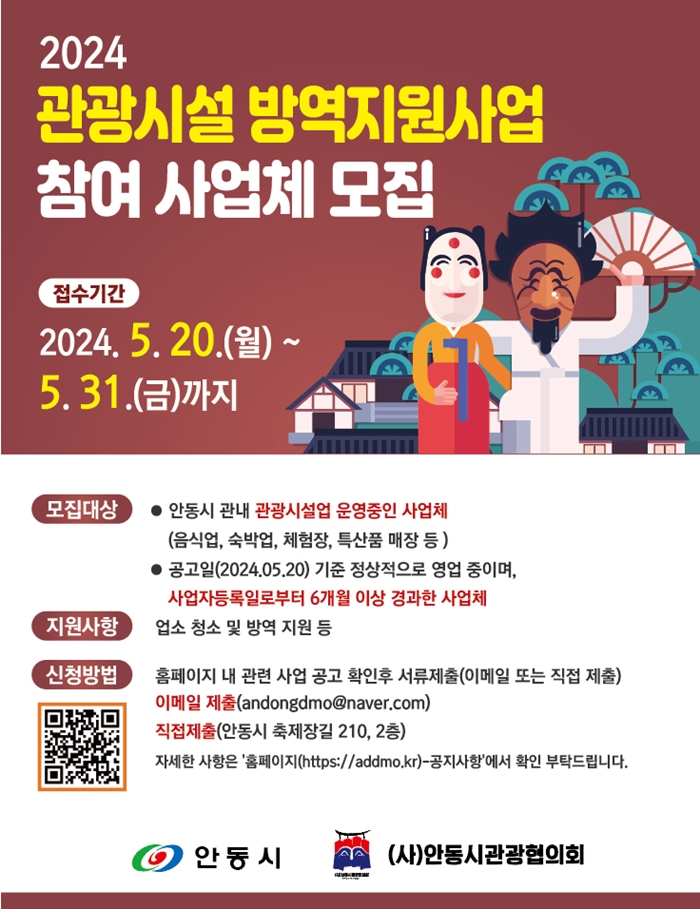 [½Ã»çÄÚ¸®¾ÆÀú³Î=±è¿¬ÇÐ ±âÀÚ] ¾Èµ¿½Ã(½ÃÀå ±Ç±ââ)¿Í (»ç)¾Èµ¿½Ã°ü±¤ÇùÀÇȸ´Â 20ÀϺÎÅÍ »ç¾÷ºñ ¼ÒÁø ½Ã±îÁö '2024³â °ü±¤½Ã¼³ ¹æ¿ª»ç¾÷'¿¡ Âü°¡ÇÒ »ç¾÷ü¸¦ ¸ðÁýÇÑ´Ù.