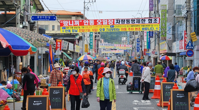 “¿Ô´Ï²¸” ¾Èµ¿ ¿ÀÀÏÀåÀº Á߾ӽŽÃÀå Àα٠Àεµ ¹× µµ·Î»ó¿¡ ¹«Áú¼ÇÏ°Ô ¿îÁýÇÑ ³ëÁ¡À¸·Î ÀÎÇÑ ¾ÈÀü»ç°í À§ÇèÀ» ¹æÁöÇϰí, Á÷Á¢ Àç¹èÇÑ ³ó»ê¹°ÀÇ ÆÇ·Î È®º¸¿¡ ¾î·Á¿òÀ» °Þ´Â Áö¿ª »óÀÎÀ» À§ÇØ ¸¶·ÃÇÑ °ø°£ÀÌ´Ù.