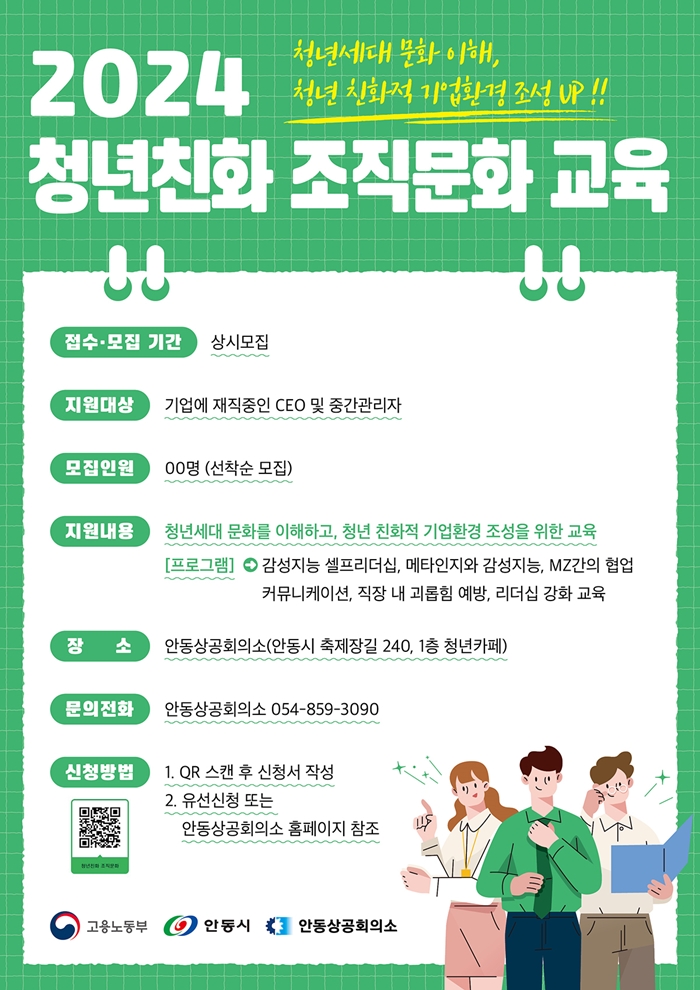 Èñ¸ÁÇÏ´Â ±â¾÷ ¹× û³âÀº Æ÷½ºÅÍ QRÄÚµå ½ºÄµÀ» ÅëÇØ ½ÅûÇÒ ¼ö ÀÖÀ¸¸ç, ±âŸ ÀÚ¼¼ÇÑ »çÇ×Àº ¾Èµ¿»ó°øÈ¸ÀÇ¼Ò ´©¸®Áý(andongcci.korcham.net)À» Âü°íÇÏ¸é µÈ´Ù.