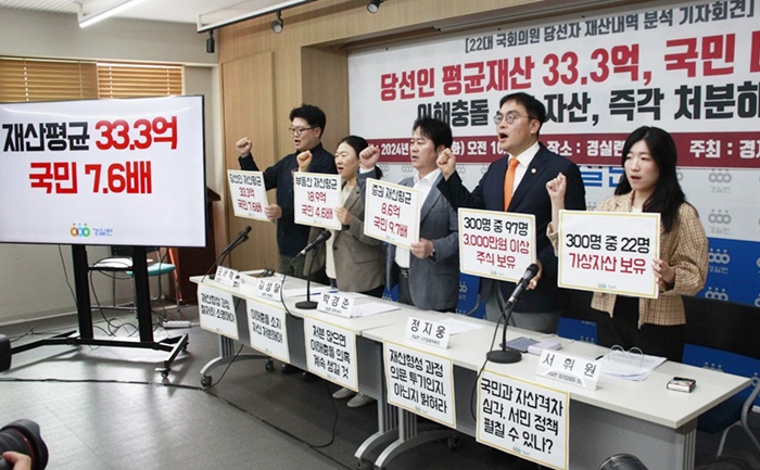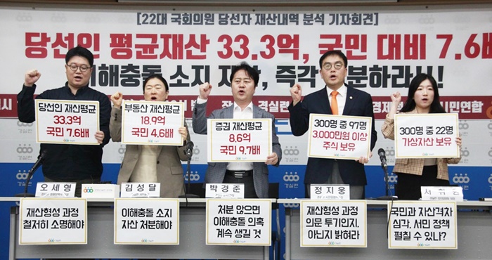 ½Ã¹Î´Üü °æÁ¦Á¤ÀǽÇõ½Ã¹Î¿¬ÇÕ(°æ½Ç·Ã)Àº 21ÀÏ ¼¿ï Á¾·Î±¸ °æ½Ç·Ã °´ç¿¡¼ ±âÀÚȸ°ßÀ» ¿°í 22´ë ±¹È¸ÀÇ¿ø ´ç¼±ÀÚµéÀÇ ºÎµ¿»ê°ú Áõ±Ç µî Àç»ê º¸À¯ ³»¿ªÀ» ºÐ¼®ÇÑ Á¶»ç °á°ú¸¦ ¹ßÇ¥Çß´Ù.