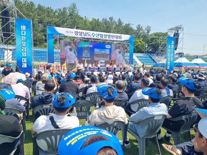 Á¦22ȸ °æ»ó³²µµ ¼ö»ê¾÷°æ¿µÀδëȸ´Â ‘¹Ù´Ù´Â ¿ì¸®ÀÇ ¹Ì·¡, ÀÚ¶û½º·¯¿î ¼ö»ê¾÷°æ¿µÀÎ’À̶ó´Â ½½·Î°ÇÀ¸·Î ¹°°¡»ó½Â µîÀ¸·Î ¾î·Á¿ò¿¡ ºüÁ®ÀÖ´Â ¼ö»ê¾÷°è¿¡ ÀÚ±à½É°ú Ȱ·ÂÀ» ºÒ¾î ³Ö¾îÁÖ°í, ¾î¾÷ÀÎ ½º½º·Î ¹ßÀüµÈ ¹Ì·¡¸¦ ¸¸µé±â À§ÇØ Áö½Ä°ú Á¤º¸¸¦ °øÀ¯Çϱâ À§ÇØ ¸¶·ÃµÆ´Ù.