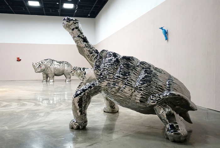ÀÛ°¡´Â ÀηùÀÇ ÀÚ¿¬¿¡ ´ëÇÑ È¾Æ÷·Î À§±â¿¡ óÇÑ Áö±¸ ȯ°æ¿¡¼ ÀÌ¹Ì ¸êÁ¾µÇ°Å³ª À§±â¿¡ ³õÀÎ µ¿¹°µéÀÎ ºÏºÎ ¾ÆÇÁ¸®Ä« ÈòÄÚ»Ô¼Ò, °¥¶óÆÄ°í½º °ÅºÏ, ¸ð¸®¼Å½ºÀÇ µµµµ»õ, Ȳ»õ µîÀ» Á¶°¢À¸·Î Àç»ý½ÃÄÑ ÀηùÀÇ ±×¸©µÈ ÀǽÄÀ» ¿¹¼ú·Î Ç¥ÇöÇß´Ù.