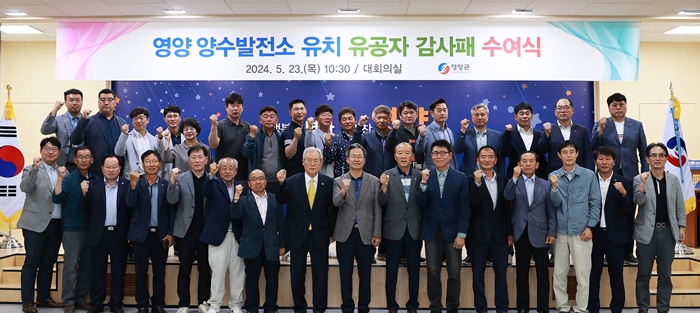 [½Ã»çÄÚ¸®¾ÆÀú³Î=±è¿¬ÇÐ ±âÀÚ] ¿µ¾ç±º(±º¼ö ¿ÀµµÃ¢)Àº 23ÀÏ ¿µ¾ç±ºÃ» ´ëȸÀǽǿ¡¼ ¿µ¾ç ¾ç¼ö¹ßÀü¼Ò À¯Ä¡¸¦ À§ÇØ Å©°Ô ±â¿©ÇÑ À¯°øÀÚ 29¸í¿¡ ´ëÇØ °¨»çÆÐ¸¦ Àü´ÞÇß´Ù.