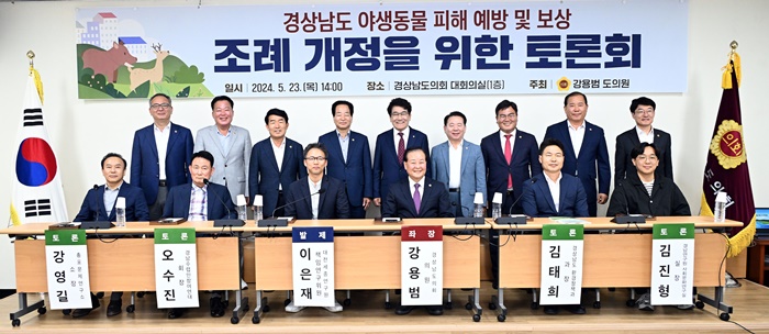 °¿ë¹ü ÀÇ¿øÀÌ Åä·Ðȸ ÁÂÀåÀ» ¸Ã¾Æ ÁøÇàÇß°í, ÀÌÀºÀç Ã¥ÀÓ¿¬±¸À§¿ø(´ëÀü¼¼Á¾¿¬±¸¿ø), °¿µ±æ ¼ÒÀå(ÃÑÆ÷¹®Á¦¿¬±¸¼Ò), ±èÁøÇü ½ÇÀå(°æ³²¿¬±¸¿ø »çȸ¹®È¿¬±¸½Ç), ±èÅÂÈñ °úÀå(°æ³²µµ ȯ°æÁ¤Ã¥°ú), ¿À¼öÁø ȸÀå(°æ³²¼ö·ÆÀÎÂü¿©¿¬´ë)ÀÌ Âü¿©ÇØ ‘°æ»ó³²µµ ¾ß»ýµ¿¹° ÇÇÇØ ÇöȲ, ¾ß»ýµ¿¹° Æ÷ȹȰµ¿ÀÇ Çö½Ç, ÀθíÇÇÇØ ¹æÁö¸¦ À§ÇÑ ¹ýÀû・Á¦µµÀû ¹æ¾È’¿¡ ´ëÇØ ´Ù¾çÇÑ ÀǰßÀ» °øÀ¯Çß´Ù.